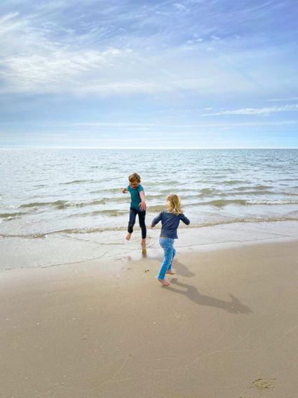 - Schoenen uit en samen met je voeten in het zand: Rockanje strand