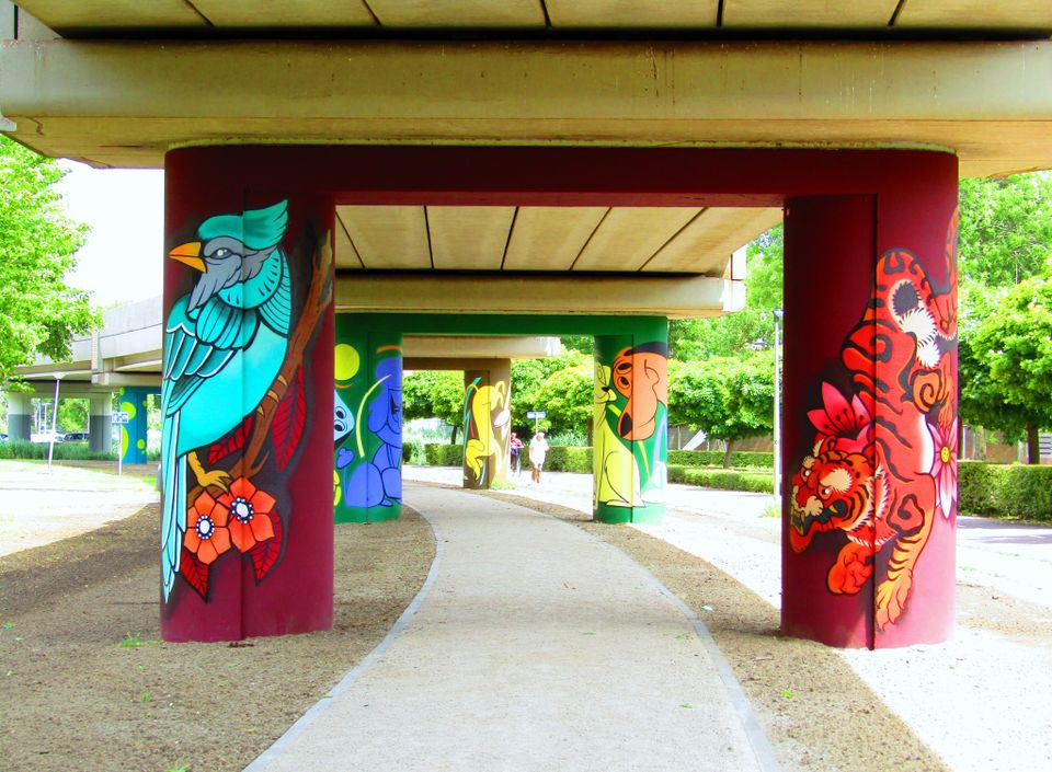 Op de metrozuilen tussen metrocentrumen Heemraadlaan en de Akkers vind je diverse streetart: