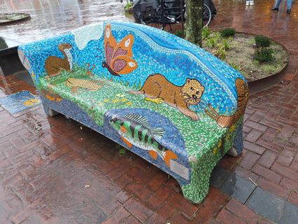 Een kleurrijk buurtbankje dat je meteen laat glimlachen.