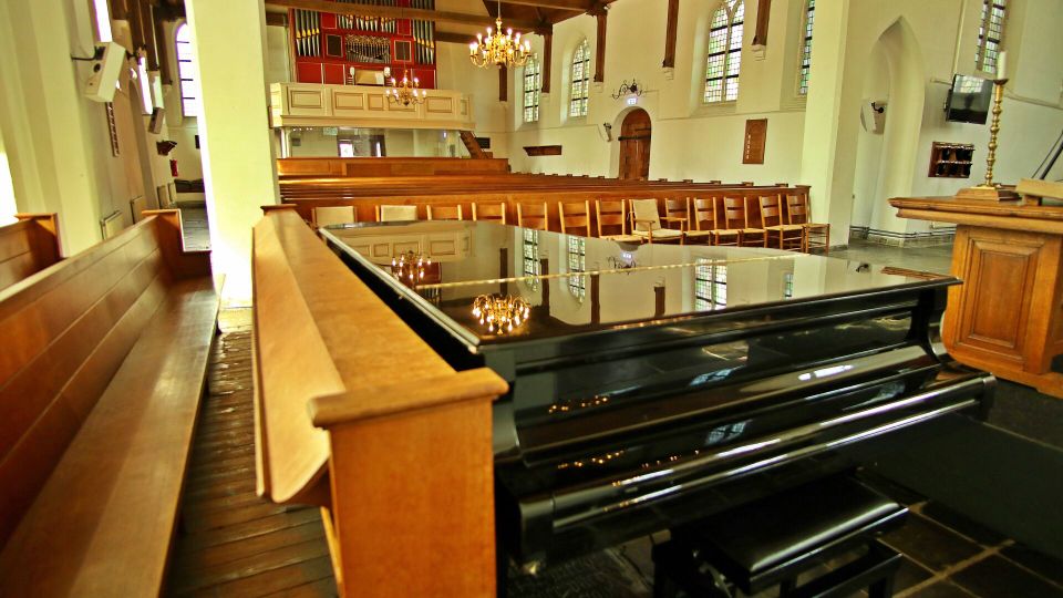 Wat je hier ziet: een kerk die trots staat op een lage terp, omringd door een kerkmuur. Al vijf eeuwen lang is dit een plek waar mensen samenkomen. De Dorpskerk wordt nog steeds gebruikt voor kerkdiensten en andere bijeenkomsten. De gotische vormen en stevige uitstraling maken het tot een herkenbaar baken in het centrum.